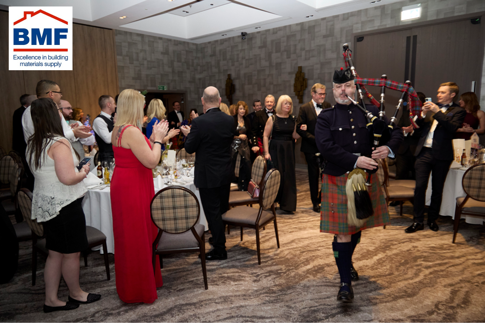 Guests enjoyed the traditional piping in and addressing of the haggis by piper, Kevin McLeod before Gordon Banks, Director of Cartmore Building Supplies and BMF Scotland Regional Chair gave the address to the Lassies and Lyndsey McCuish, Operations Manager of PDM replied for the Lassies. Nick Boyle, Sales & Strategic Director at Frazer ably compered the night’s live auction to boost the funds raised for charity.