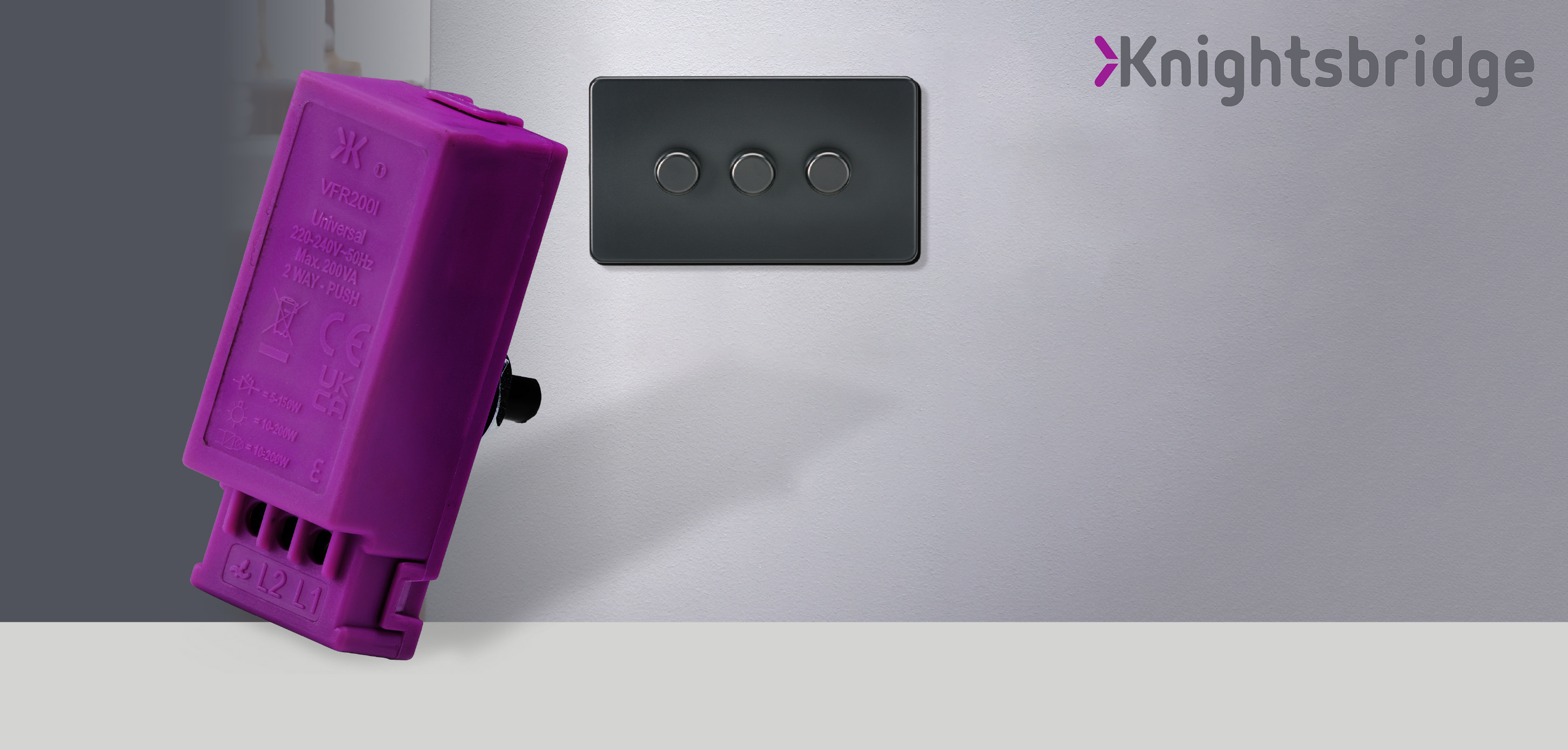 Each model in the new Intelligent Dimmer range from Knightsbridge – one of the UK’s leading manufacturers of wiring accessories and lighting – is now equipped with the versatile VFR200I module, allowing for a seamless switch between trailing edge and leading edge dimming technologies.